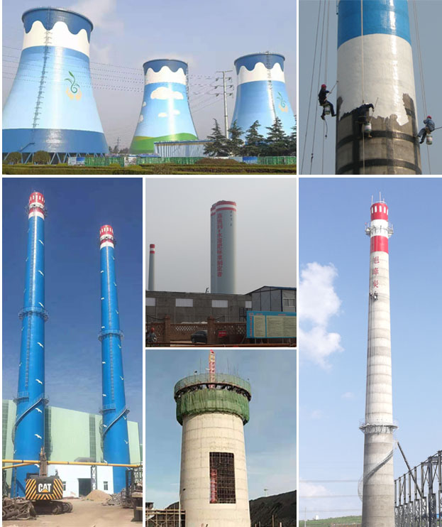 “宏順建設工程有限公司”主要服務:(國內.國外)210米以下各種(磚、水泥、砼、鋼結構)煙囪的新建滑模、防腐、維修、拆除、加固、脫硫、美化、加高、傾斜校正、更換內襯、內壁清灰、安裝平臺、安裝避雷針等高空作業工程;并承接水塔、冷卻塔、涼水塔、造粒塔、鍋爐鋼架、鋼梁屋架、管道、行車、儲罐、變電構架、廠房網架、龍門吊等新建、防腐、維修、美化等工程。